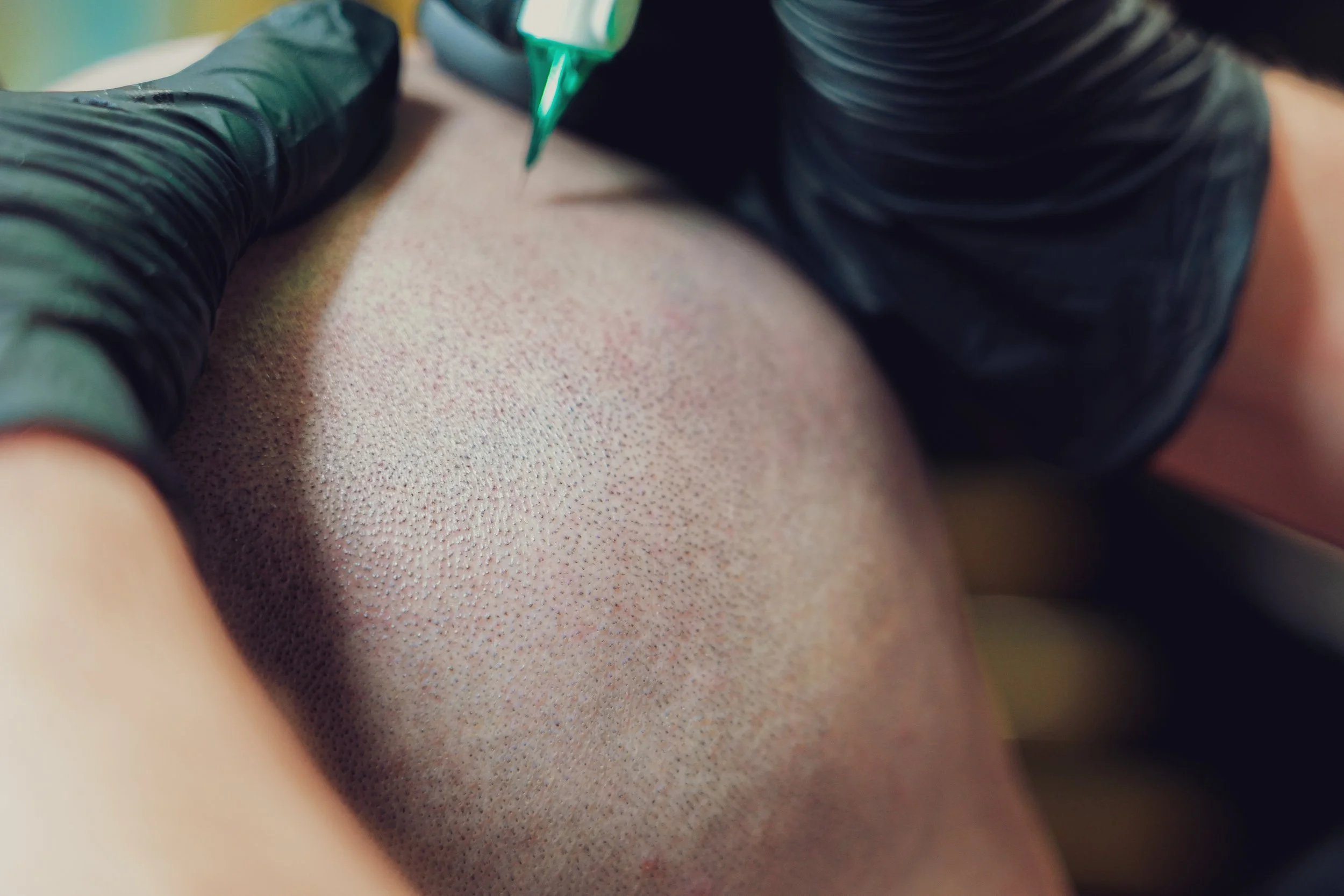 SMP uses specialized equipment and techniques designed specifically for the scalp. The needles are finer, the pigment is shallower, and the motion is more delicate than a body tattoo.